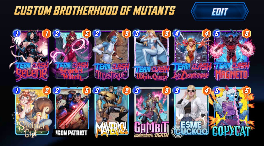 The most fun from the last run was to be had with the X-Men. Extra Energy just enables fun, splashy plays. But now, on the other end of an oppressive Star-Lord Energy meta, I'm seeking different styles of play. I've been really enjoying the new Brotherhood and the improved Spider-Verse.