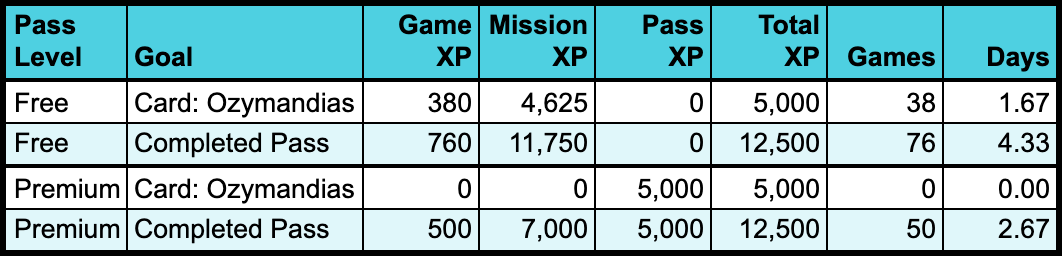 As you can see, the Premium Pass saves ~38 games on your way to Ozymandias, or ~26 if you want to finish the Pass.
