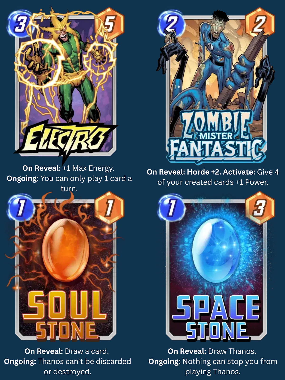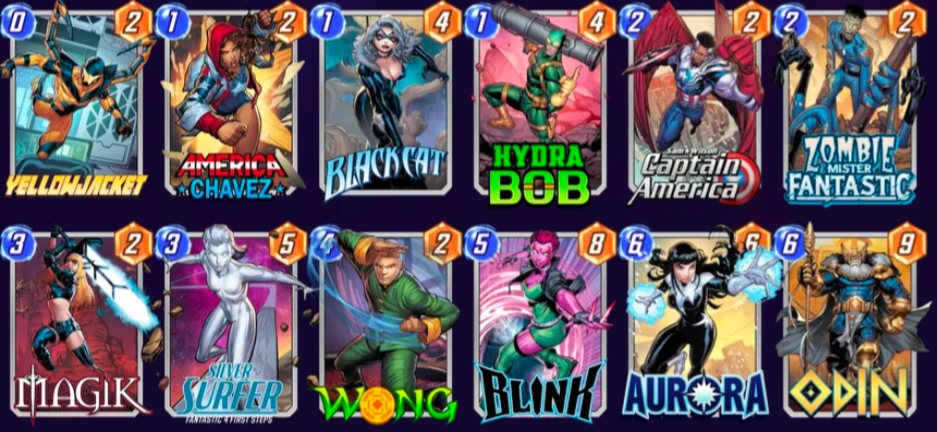 | Non 1-Cost cards | Yellowjacket, Evolved Wasp, Cap's Shield, Makkari |