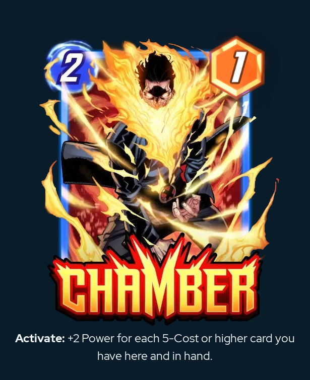 - [Old] 2/2 - Activate: +2 Power for each 5-Cost or higher card you have here and in hand.