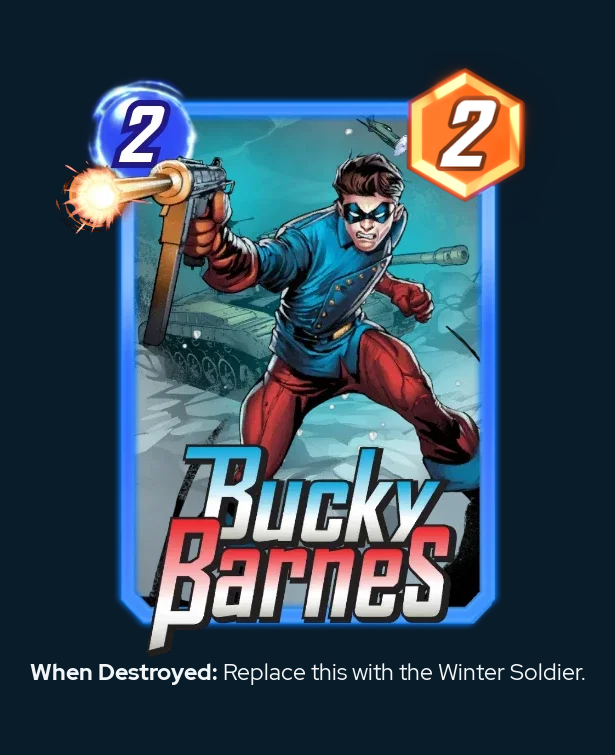 It's certainly the smallest whisper of a buff to hit the Bucky Barnes instead of Winder Soldier. This is directly a buff for Dormammu that can gain his power or Archangel decks that may accidentally bring him back. If that's the goal, though, just make him a 2/3 at least. Note: Bucky is one of the absolute best cards in the game on Altar of Death hot location days, which is coming up this weekend!