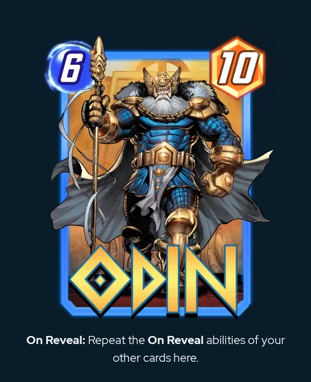They keep buffing Odin in an attempt to keep him relevant. Stryfe and Zola have become the de facto ways to repeat abilities on the last turn, but there are quite a few solid decks that can run Odin at the moment.