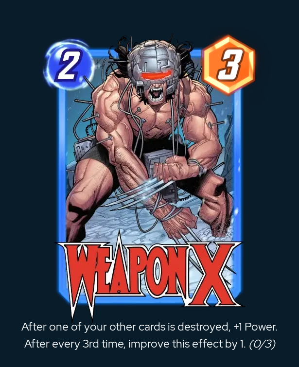 As opposed to Viv and Caiera, here is a 1-Power buff that just seems like it's not enough to move the needle. Weapon X isn't awful, but it's the kind of deck that is both draw dependent and will also lose a bunch of games by a few points.