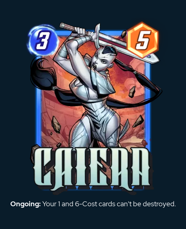 Caiera just always feels awful to put onto the board, due to the combination of lost opportunity with your 3 Energy and the small body. 3/5 really might flip the script, as much as a 1-Power buff can. She'll probably become a staple in the Ozymandias decks moving forward.