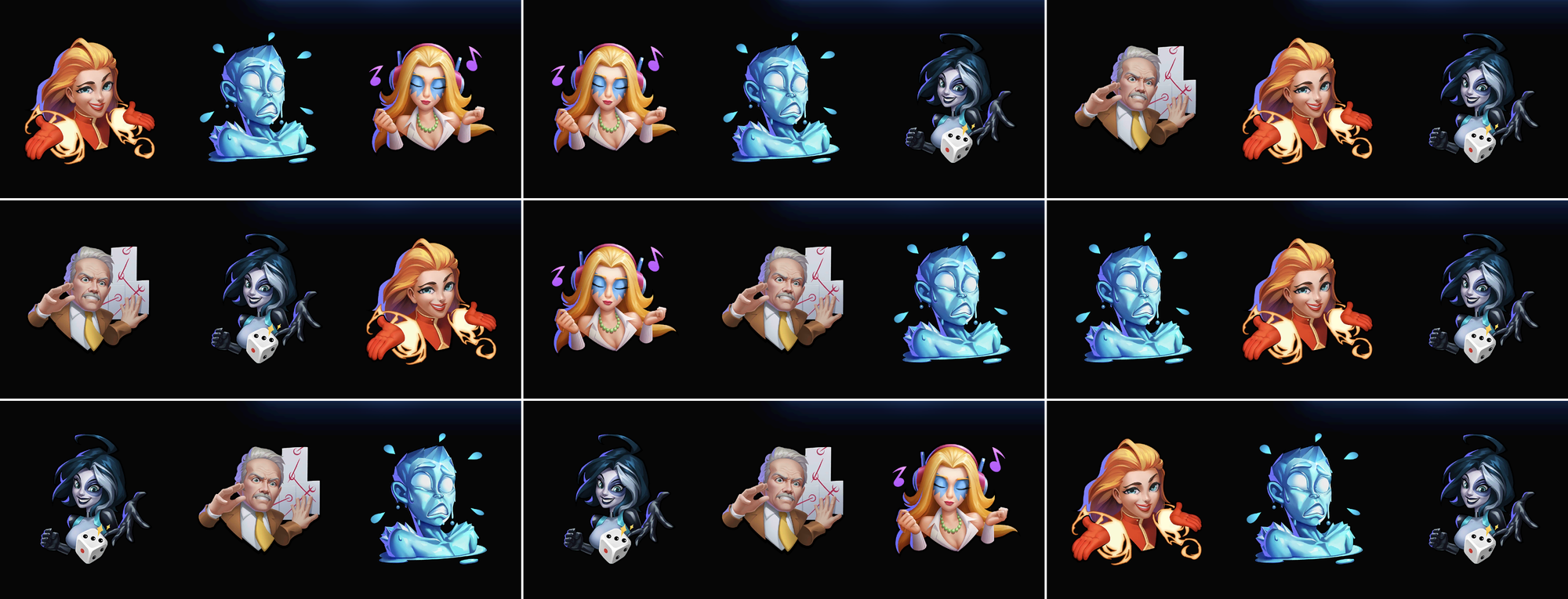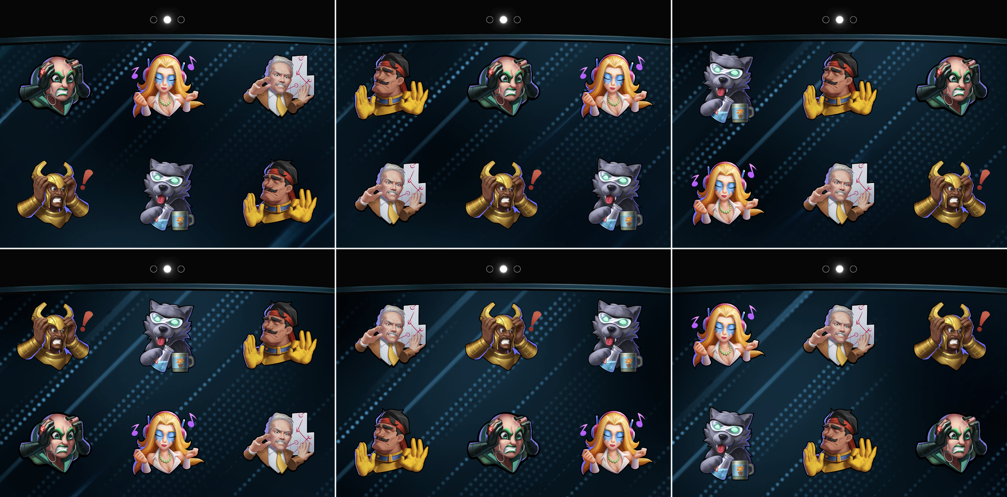 To match the six emotes shown at the start of the article, I equipped them one-by-one, in reverse order: Drax, Forge, Fenris, Heimdall, Mobius, Dazzler.