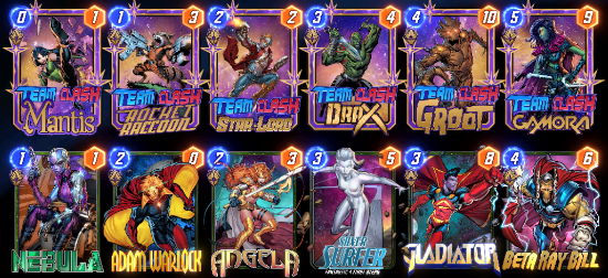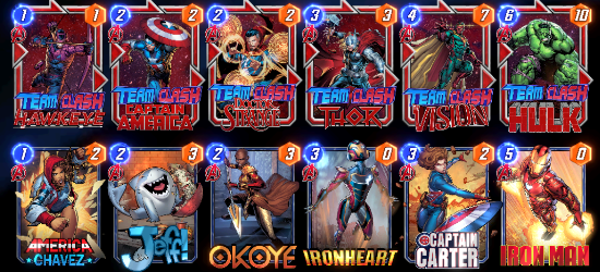 Note: The normal versions of the new Team Clash cards are available for use, outside their teams. You CAN play regular Nightcrawler in the Avengers, but you CAN’T play regular Nightcrawler in the X-Men or Team Clash Nightcrawler in the Avengers.