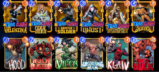 This team also has a lot of pieces that synergize with Victoria Hand. Kate Bishop is an underrated V. Hand card that allows us to maintain the small clog sub-theme. I chose not to include Iron Patriot in this build because, well, the Thunderbolts are all about being behind, not ahead. This deck is built to rain down power on the last turn, a key strength of this team.