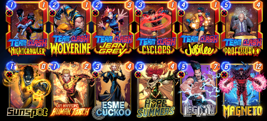 - Team Clash Nightcrawler: You can move this once. When this moves, give it +1 Power for each of your X-Men at the new location.