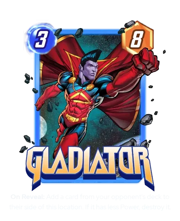 Drax punishes any opponent that tries to win by playing a series of large cards. Sound familiar? We are currently in a metagame that heavily favors this new card. I can see Drax, AoL’s long-term role being essentially a tech card against Ramp + Big Cards strategies. However, he's not a panacea for this points-y meta – cards like Dragon Lord and Hela will play around him easily, leaving you with a waste of 3-Power. Furthermore, you're going to want to play Drax out early to try and get maximum value out of him, making him a very face-up challenge for your opponent. I think Drax will have a strong place in any meta where he can get 2+ boosts with some consistency – making him at least a 3/10 – but will fall short in metas where he's more often getting 0 or 1 boost. Gladiator is a kind of foil to this card – metas that are especially bad for Drax will be friendly to Gladiator and vice versa.
