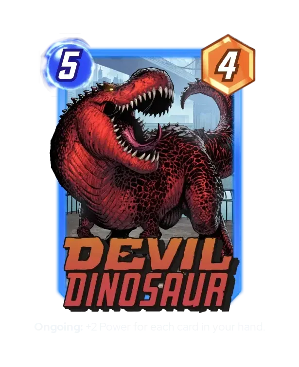 More likely you're going to skip 5 Energy, rather than 6. In some cases you'll want to wait until Turn 6 to do that to avoid being countered by your opponent or seeing them retreat. Blue Marvel plus a 1-Cost card like Squirrel Girl is very appealing for low Series play and feels worth the skipped Energy more than a lot of what Magus can do. Digging out your deck's big Ongoing payoff (Darkhawk, Ronan, Devil Dino, Ajax) and putting it on a 5-Power body feels strong.