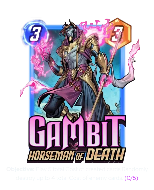There are some cards from this season that have some degree of synergy with Ozymandias. En Sabah Nur might feel a little weird – you don't want to shuffle in your rocks! – but remember, if they have extra power, they likely won't get shuffled in by Apocalypse Celestials Chosen. But ESN gives you a solid way to dig for your Ozymandias or other key cards. I think he will be a solid partner for Ozymandias. I'm less sold on Selene. I actually think she'll be better in Demon-based Victoria Hand builds than in Ozymandias Rock decks, but I'm sure this will be one of the first places she'll be tried. Gambit, on the other hand, (unfortunately) probably will work out with our Rocks decks. We can't fuel him exclusively on Rocks, but there are so many easy ways to get to 5 that that's not a big deal.