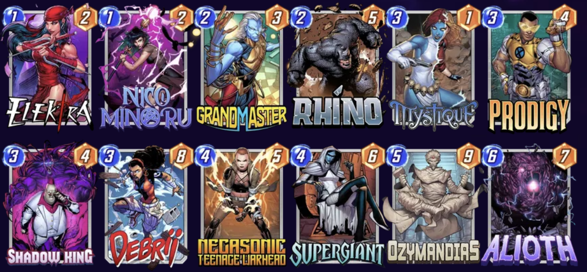 This is just a straightforward, basic Rocks deck that can serve as a basic jumping off point. We have enough high-cost cards to justify Mole Man, but we could also squeeze and Onslaught in here over the Nico. Nico could also become Squirrel Girl to make our Mockingbird more reliable. This deck looks like it's going to be heavily reliant on drawing the Rhino and Debrii early.